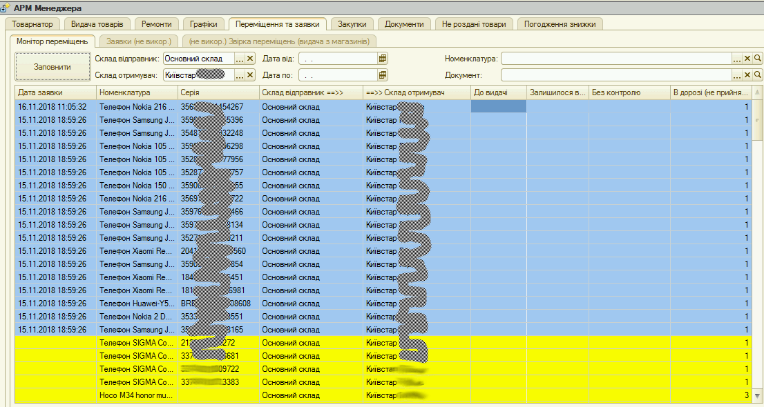 Менеджер який має відповідні права може контролювати товари в дорозі і бачити їх статус, які з них ще не видані, а які не прийняті.