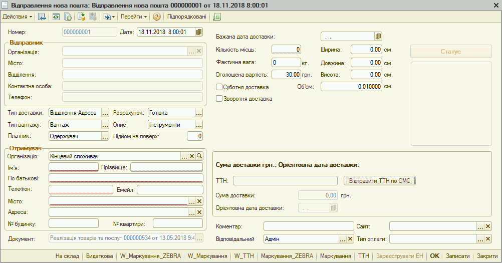 Відтепер не потрібно стояти в черзі для реєстрації товарів на Новій Пошті. Система включає механізм відгрузки у разі не роздрібної продажі, який дозволяє реєструвати накладну в Новій Пошті прямо в програмі.