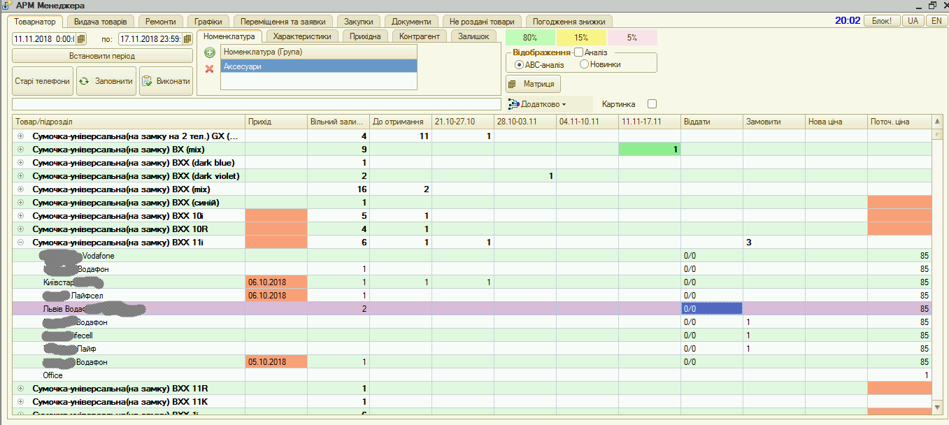 Можна ініціювати запити на переміщення між магазинами, на замовлення на магазин від постачальника, та встановлювати ціни індивідуально на магазин прямо в Аналізаторі, ставши на рядок зі складом, де надлишок товару, чи куди товар треба замовити.