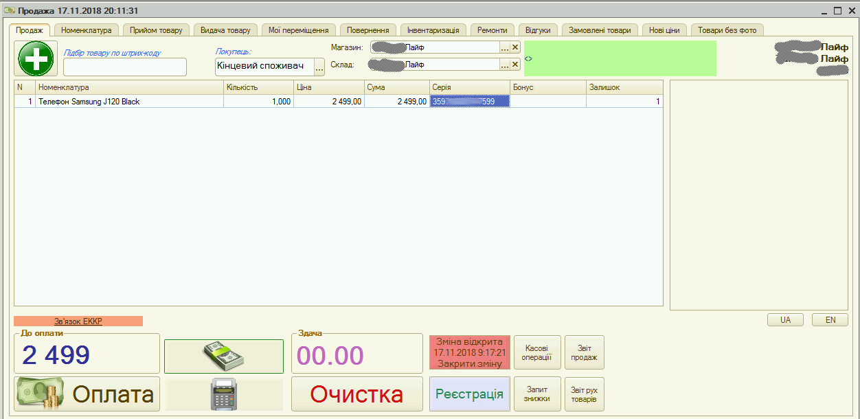 Система здійснює повний контроль над товарами у розрізі IMEI. Усі операції в програмі адаптовані та оптимізовані для роботи зі сканером штрихкодів